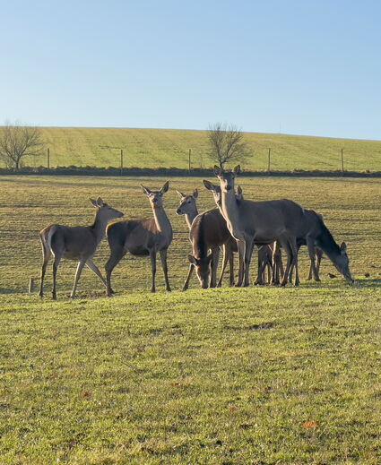 - Gesellig – es werden Rudel gebildet (ältere Damhirsche können Einzelgänger sein)
