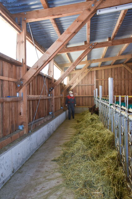 Der Stall wurde nach den "Kriterien besonders tiergerechter Haltung in der Rindermast" für bis zu 255 Masttiere umgebaut. Durch die Umgestaltung der Innenausrüstung und die Haltung der Tiere in abtrennbaren großen und mit Stroh eingestreuten Gruppenboxen, ist ein für Mensch und Tier gefahrloser Umgang möglich.